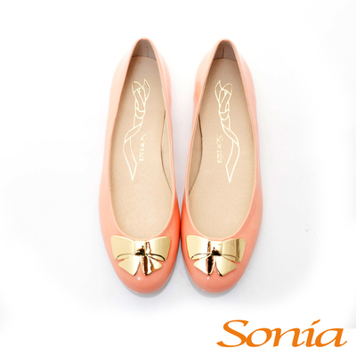Sonia-戀愛甜氛-唯美金屬大蝴蝶結平底娃娃鞋-粉橘