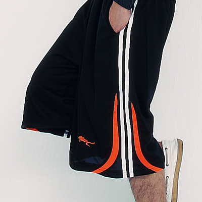 【FATAN】運動綁帶雙白線籃球褲(黑+橘) 優質剪裁,舒適透氣!