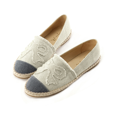Grace gift夏日女孩~鬚鬚感撞色蝴蝶結草編樂福鞋 灰商品網址: