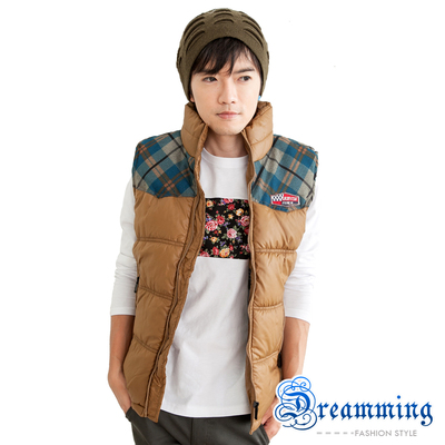 Dreamming 立領剪接格子內磨毛鋪棉背心外套-共二色商品網址: