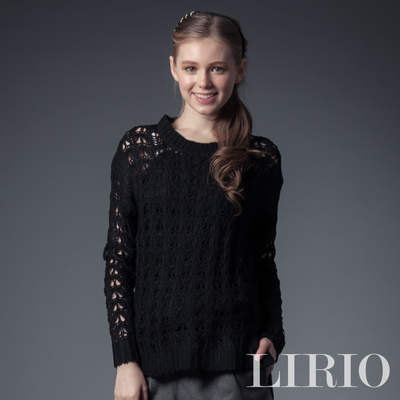 針織上衣 性感簍空圓領長袖針織衫 LIRIO