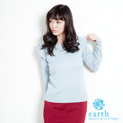 earth music&ecology 摺邊肩設計針織上衣 P