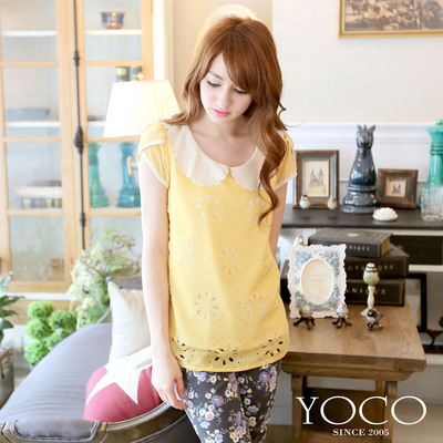 東京著衣-YOCO 花型領鏤空雪紡上衣(共四色)