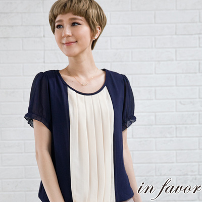 雪紡拼接壓摺上衣(氣質藍)-in favor商品網址: