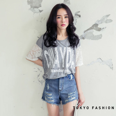 東京著衣 蕾絲短袖字母棉T(共三色)