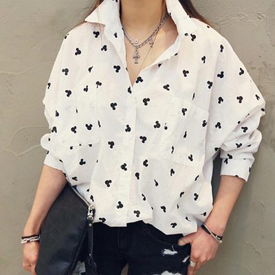休閒卡通米奇寬鬆長版襯衫(白) iFashion商品網址: