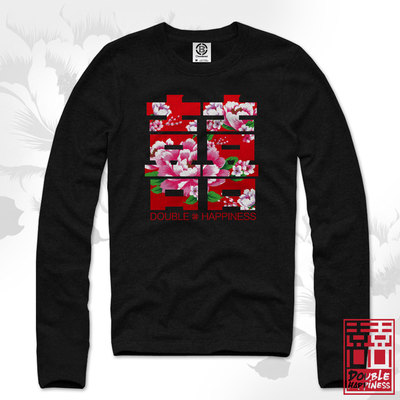 商品訊息描述: DH囍牌 牡丹花紅色囍字長袖T恤-共三色
