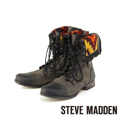 STEVE MADDEN -- 印地安風格內裡真皮刷色綁帶中筒靴 -- 部落黑