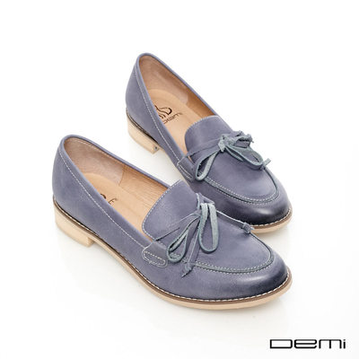 DEMI~英倫風情-(MIT)真皮擦色復古牛津低跟鞋-優雅藍