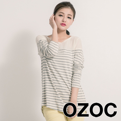 • OZOC 透感雪紡條紋拼接針織上衣