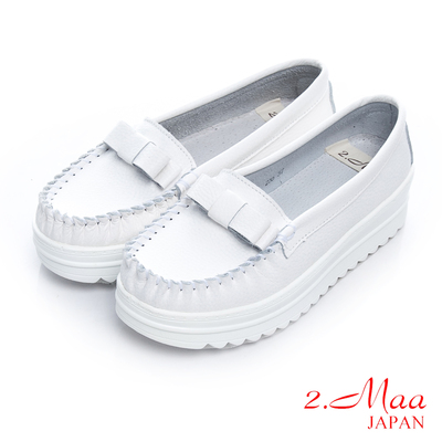 2.Maa 幸福甜心馬卡龍輕時尚設計荔枝紋牛皮厚底莫卡辛-霧白