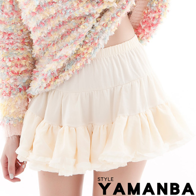 【Yamanba】日系ONE SPO款~杏色多層次雪紡百搭蓬蓬裙