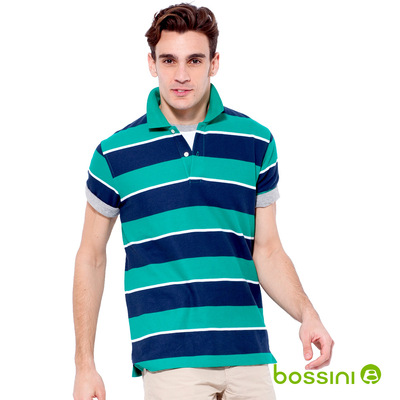 【bossini】男裝-撞色橫紋排汗POLO衫(深青綠色)