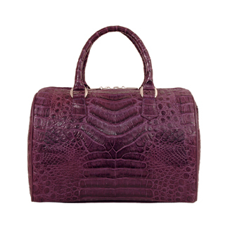 Sarlisi臻品鱷魚腹皮波士頓包,採用自然素材中最高等級-鱷魚的腹部皮革製作;鱷魚腹皮非常難以取得(因鱷魚腹部非常容易磨傷且易有破損)故增加非常昂貴的養殖成本及皮革面料的成本,現今鱷魚皮革計價方式以每公分作為單位。鱷魚的腹部鱗片多為方正的竹節格紋,較為平坦、柔軟、皮質柔韌更顯質感細膩。
