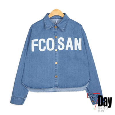 字母印花寬鬆版單寧牛仔襯衫(共二色)-7day