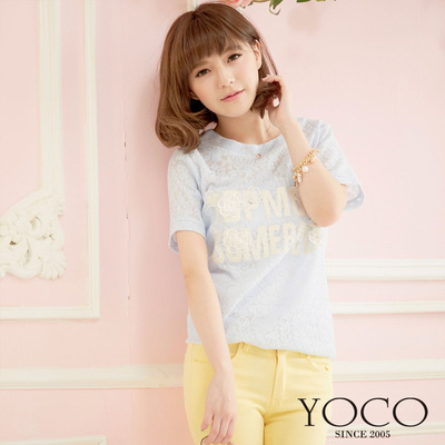 東京著衣-YOCO 珠花字母透肌蕾絲T恤(共三色)