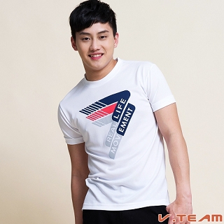 【V.TEAM】追風速度印花吸排圓領Tee-男(經典白)