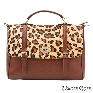 【Umoie Roie】小花釦豹紋馬毛書包_暖咖啡