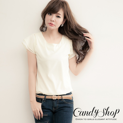 CANDY小舖 清新風格肩袖剪洞素面雪紡上衣(米色)