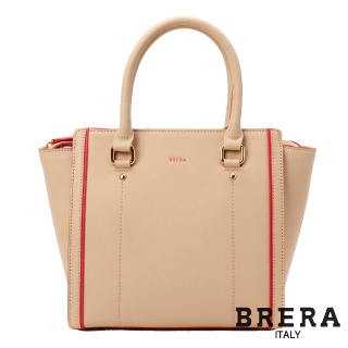 【BRERA】中性款線條蝙蝠托特包(粉膚杏)