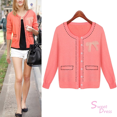 珍珠蝴蝶結長袖針織外套(粉)Sweet Dress商品網址: