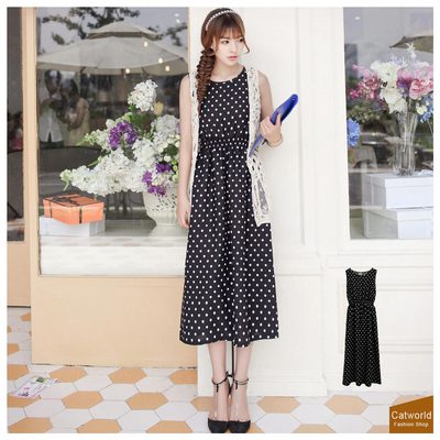 直到網友Michael介紹我上網買了一件Catworld 波點腰鬆緊背心長洋裝黑色,想不到品質和剪裁真的和夜市OR路邊攤差很多!!