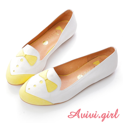 Avivi girl 俏皮派蝴蝶衣領造型平底鞋(黃)