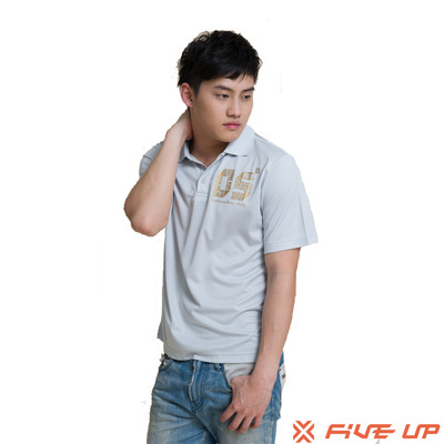 FIVE UP-紳士風尚印花吸排POLO衫-潮淺灰
