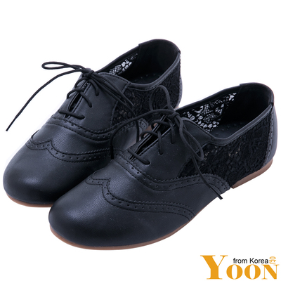潤YOON正韓專賣-韓國製英倫雅痞綁帶蕾絲拼接牛津鞋(黑)
