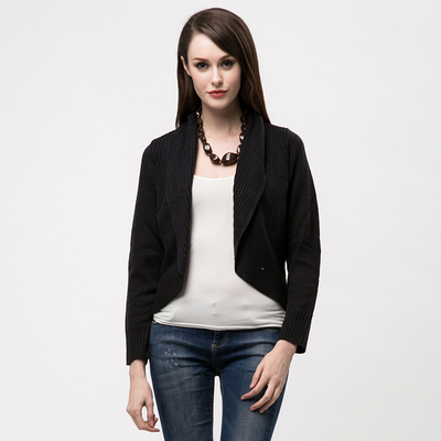 瑞典H&M 開襟直條紋彈性舒適針織外套(原始黑)