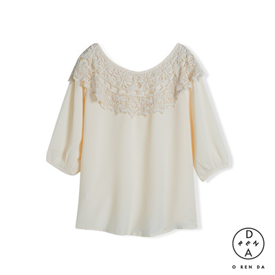 直到網友Michael介紹我上網買了一件ORENDA-一字緹花圍領五分袖雪紡上衣-杏色,想不到品質和剪裁真的和夜市OR路邊攤差很多!!
