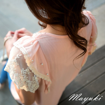 東京著衣-MAYUKI 蕾絲袖珍珠雪紡上衣-S.M(共二色)