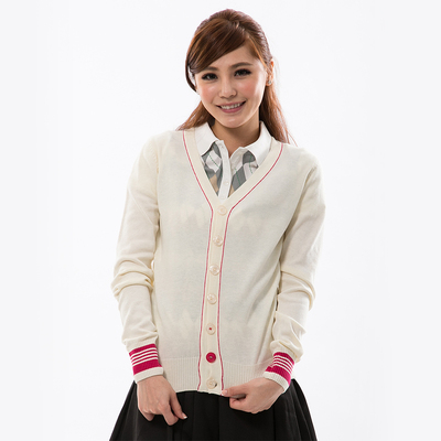 【GOLFJUNKIE】就愛學院風 V領大圓釦針織袖口條紋外套-鑽石白