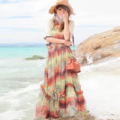 圖騰花平口露肩及地長洋裝(花色)-Joli-neon之前我就一直想買百貨公司的衣服,但一直找不到藉口為何要花較高的價格買百貨公司的衣服,直到網友Michael介紹我上網買了一件圖騰花平口露肩及地長洋裝...