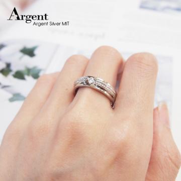 【ARGENT銀飾精品】K白金真鑽系列-男戒「閃耀愛戀(R06男.寬版)」14K金戒指單鑽+48顆排鑽造型 Diamon