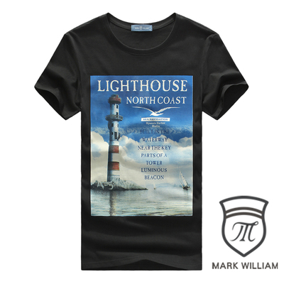 MARK WILLIAM?燈塔藍天海景圖案印花棉質圓領短T?黑色商品網址: