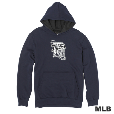 MLB-底特律老虎隊連帽植絨印花厚T恤-深藍(男)