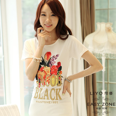 LIYO理優 T恤花卉珍珠印花上衣 211 S-L
