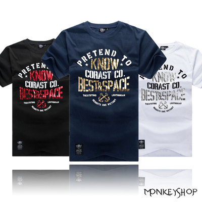 Monkey Shop情侶男女MIT學院風燙金海軍錨短T-3色商品網址: