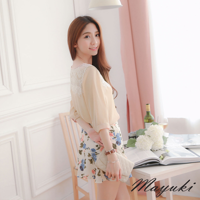 東京著衣-MAYUKI 小露背睫毛蕾絲雪紡上衣(共三色)