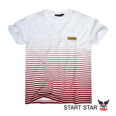 start star 漸進條紋淡定T(白) start star 條紋經典款 漸進設計的線條散發出淡定的視覺印象 簡單而個性鮮明的風格 淡定T再度魅力演繹 胸前牛皮logo標更是提升質感!