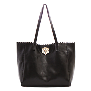 【ANNA DOLLY 真皮】知性浪漫Buried真皮小花肩提包(經典黑)
