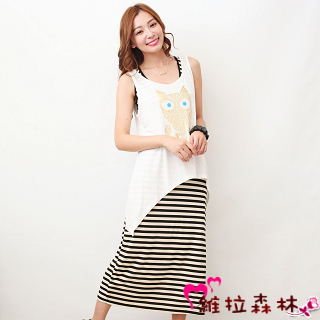 【維拉森林中大尺碼】白色貓頭鷹條紋二件式長洋裝商品網址: http://www.momoshop.com.tw/goods/GoodsDetail.jsp?i_code=2674451&memid=6...
