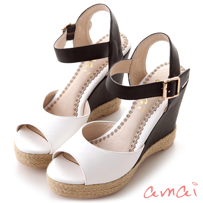 amai*詮釋夏天.畢卡索印象撞色楔跟涼鞋*韓系白商品網址: