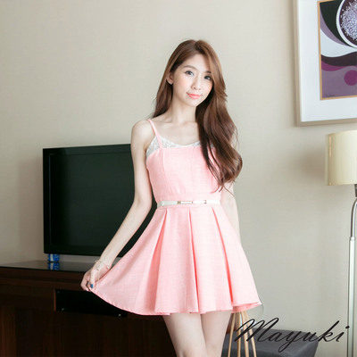 東京著衣-MAYUKI 綴蕾絲細肩帶棉麻洋裝-S.M(共三色)