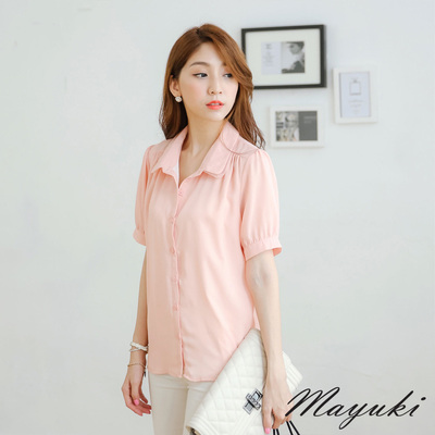 東京著衣-MAYUKI 純色玻璃紗領雪紡襯衫-S.M(共二色)