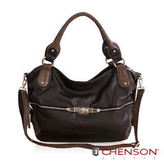 【CHENSON】大膽宣告.超炫耀雙拉鍊釦斜肩包.附背帶/悸動黑(CG65617-3)