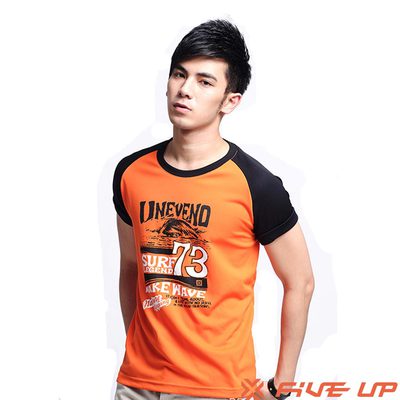 FIVE UP-衝浪高手印花吸排圓領Tee-春淺橘