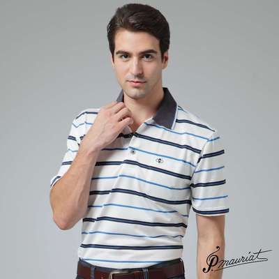PAUL MAURIAT波爾.瑪亞吸溼排汗短袖POLO衫-藍黑條