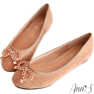 Ann’S甜美印象.金屬蝴蝶結內增高娃娃鞋*杏